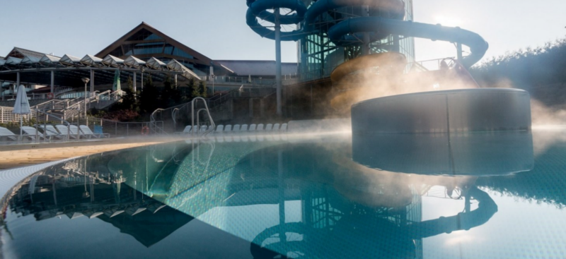 Zostawnica – Kombinace vnitřního a venkovního bazénu s termální vodou 30-36°C. Hloubka: 1,3 m.